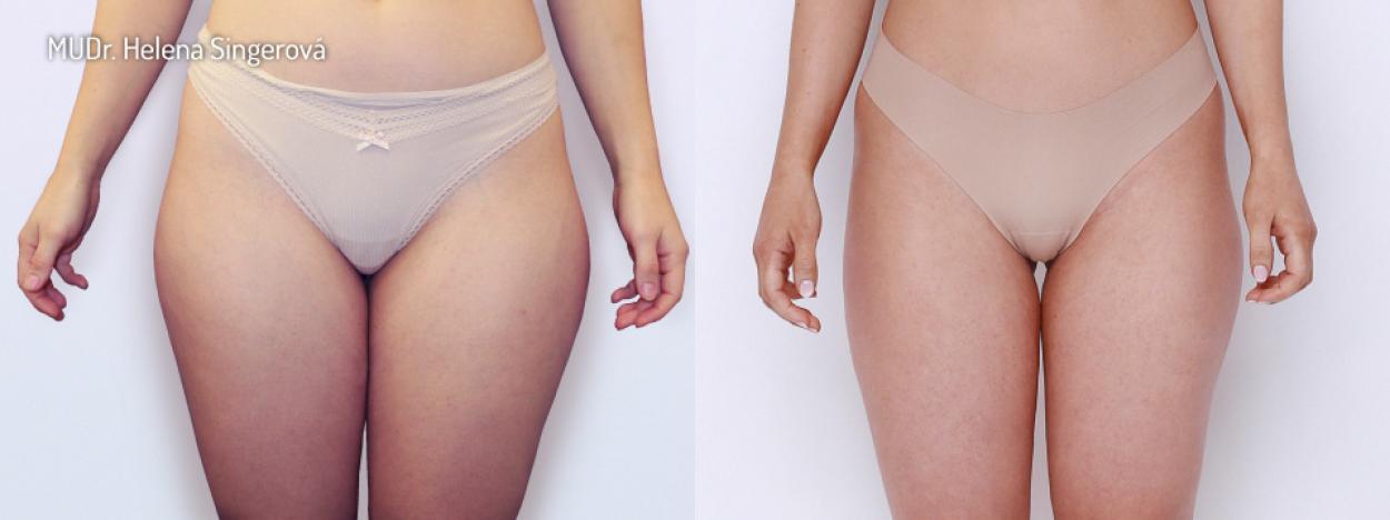 For thigh liposuction, we combine classic liposuction with BodyTite radiofrequency-assisted liposuction, which tightens the skin above the treated area. It is recommended for older clients with poorer skin quality.