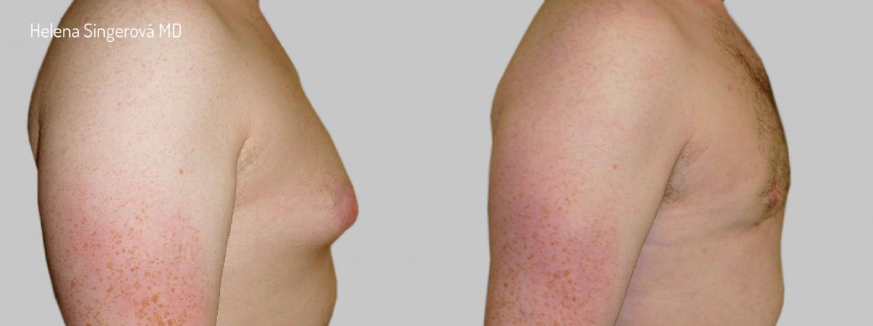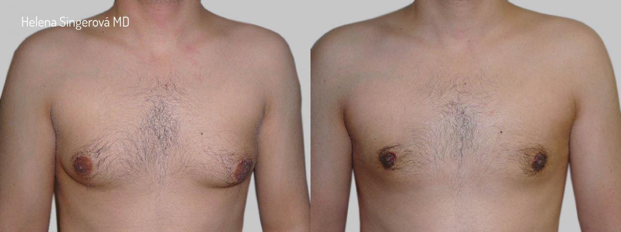 During gynaecomastia surgery, the entire mammary gland must be removed. The procedure occasionally needs to be supplemented by liposuction – removing the fat from the subcutaneous tissue around the gland.