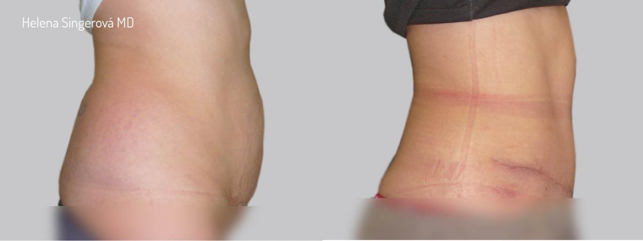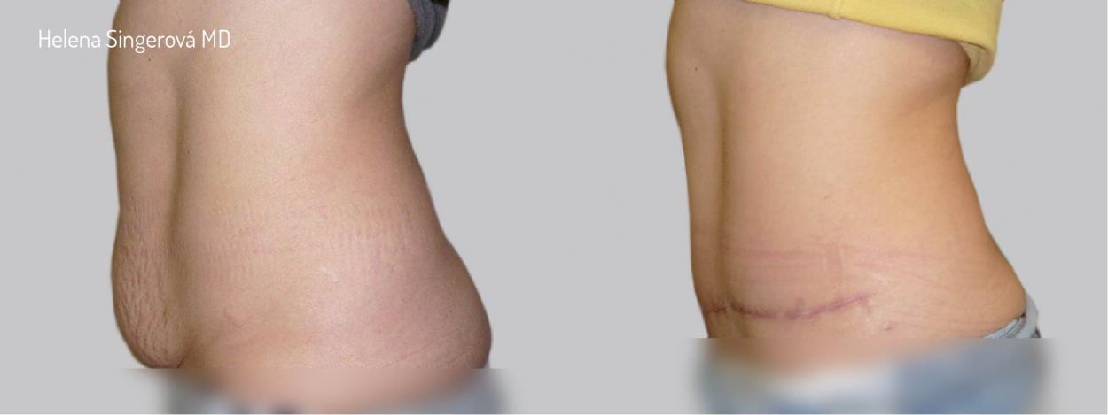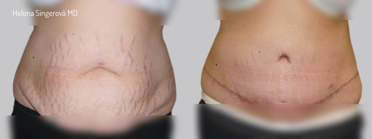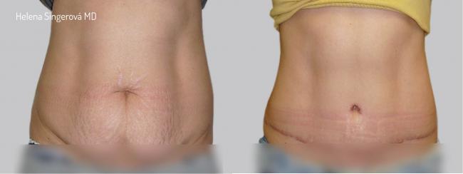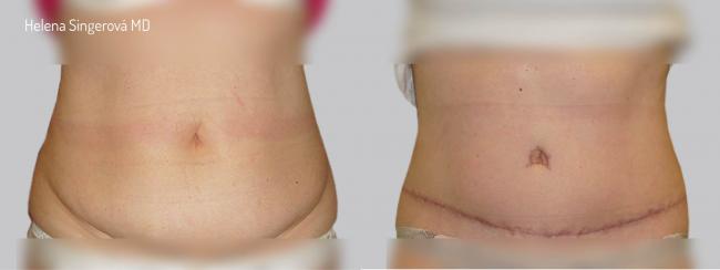 Abdominoplasty has excellent visual and functional results, but at the cost of scarring, necessary to reduce excess skin. The scar runs in the lower abdomen and is placed so that it is covered by underwear. Another small scar appears around the navel.
